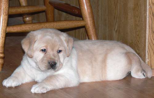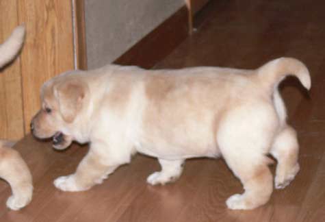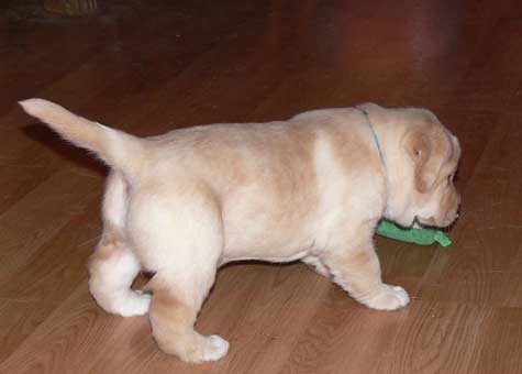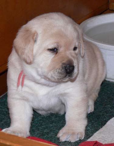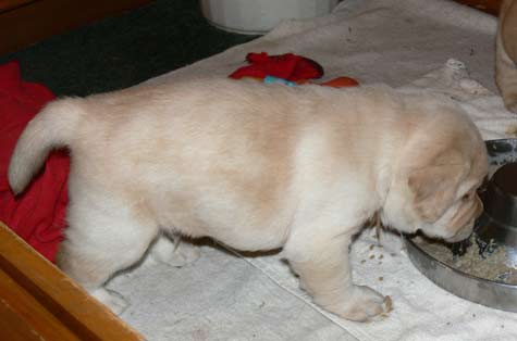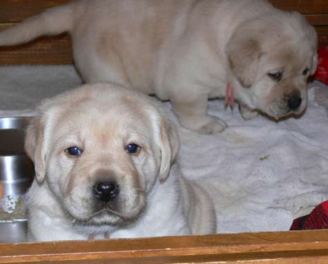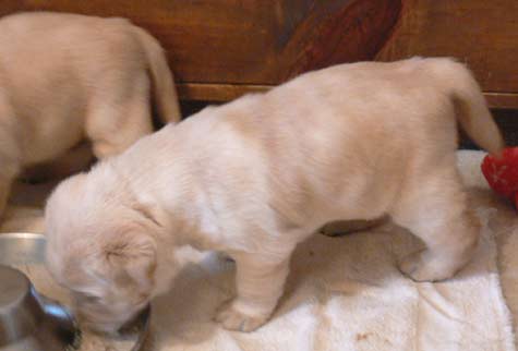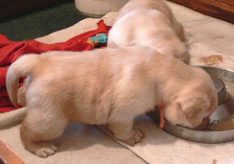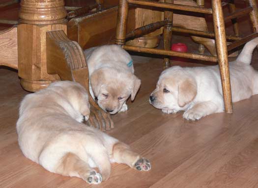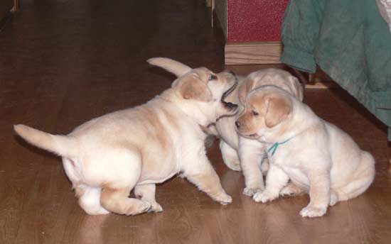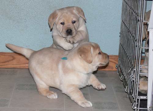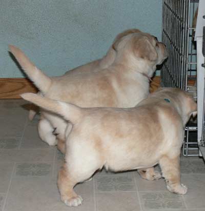 Pups visiting the big dogs! - 5.5 weeks (Turquoise Girl in front)
