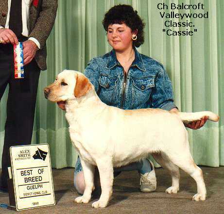 "Cassie"Can. Ch. Balcroft Valleywood Classic (ylw)Hips & eyes clear Int'l, World, Amer, Fr. Ch. Sandylands Rip Van Winkle x Valleywood Crow Haven Fiddle