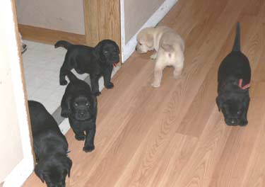 Head shots below taken at 4 weeks (some still have puppy food on their faces!)