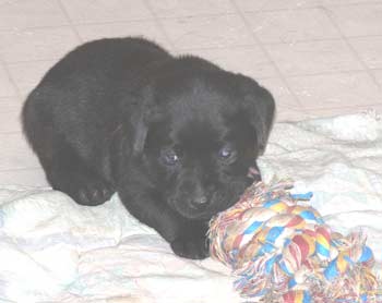 Puppies are enjoying getting out of the whelping box and running around the whelping room, exploring and playing with different toys. By 5+ weeks, they'll move to the puppy kennel where they'll have more room to romp, learn to use the doggy door and have time in the grassy puppy yard and playground equipment.