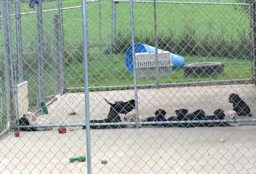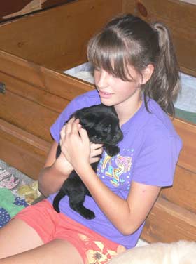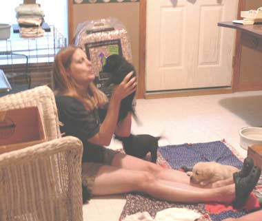 Friends, Joanne and her daughter Rachel, playing with pups @ 5 weeks