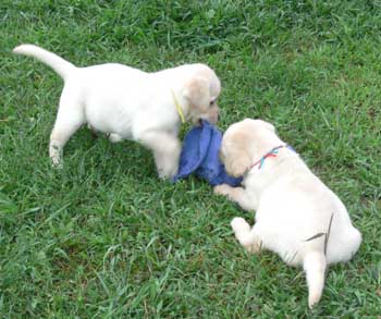 8 weeks: (left) Red/Turquoise Boy - (right) Yellow Girl