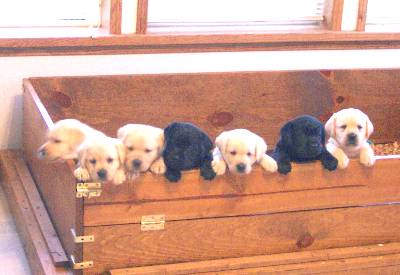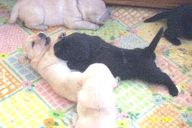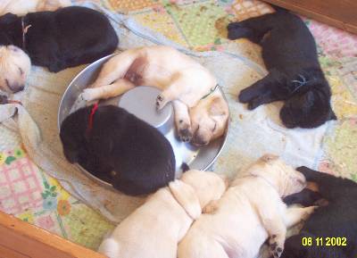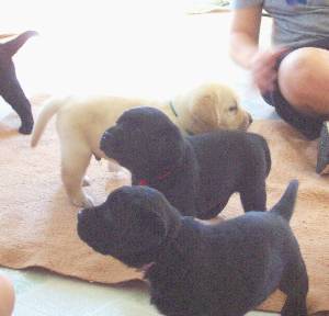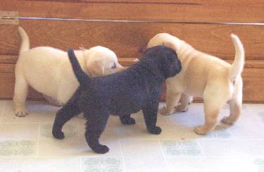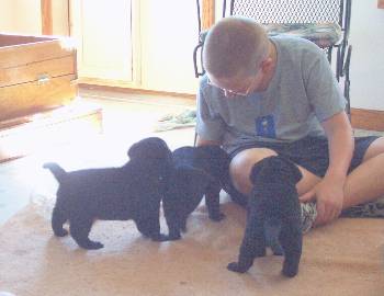 Purple, Red & Green Boys @ 3.5 weeks Black pups @ 3.5 weeks