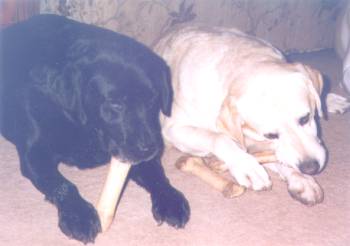 Dyna, with her half-sister Shirley in 1995 or 1996. They had the same famous daddy, Gunnar.