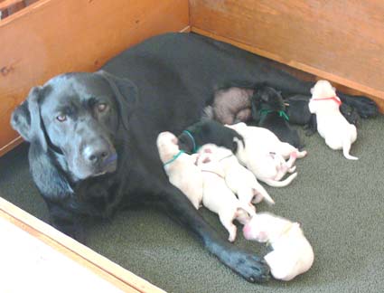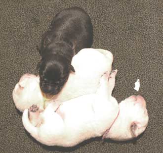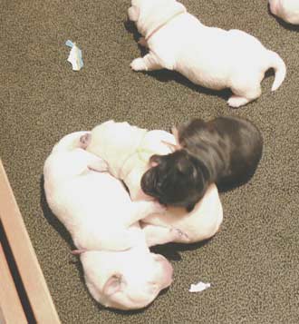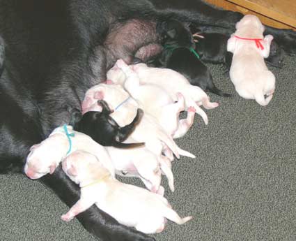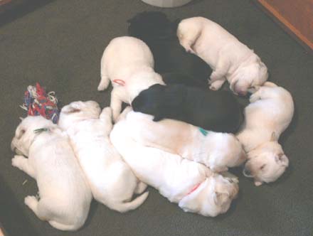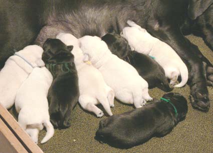 Hungry, growing puppies on Day 8 Nice chunky puppies with with lovely heads and great tails!