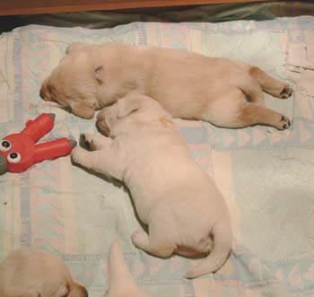 5 weeks: (left) Green Boy - (right) Blue Boy