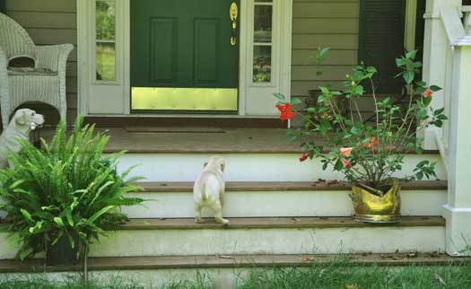 Learning to go down the front porch steps at 9 weeks