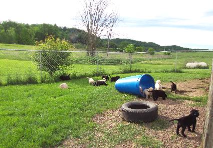 Chase and Karina litters playing in puppy yard - 6/9/05