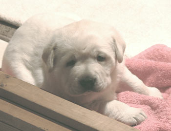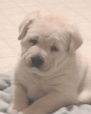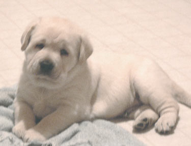 The "Lone Ranger" at 6.5 weeks He had the run of the whelping room, and sometimes the whole house, along with his mama and old Molly, until he left for his new home at 8 weeks.