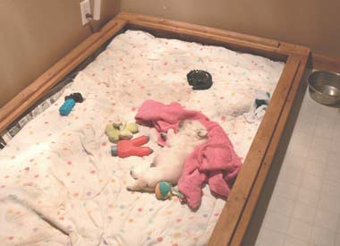 Little Blue Boy had the whelping box and all the toys all to himself (3 weeks)