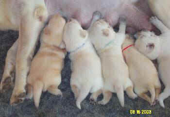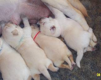 Green, Red, Blue Boys, Pink Girl, Brown Boy Pups - Day 5