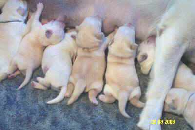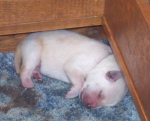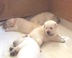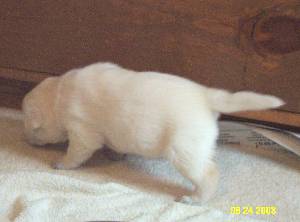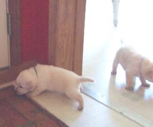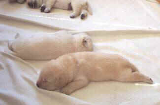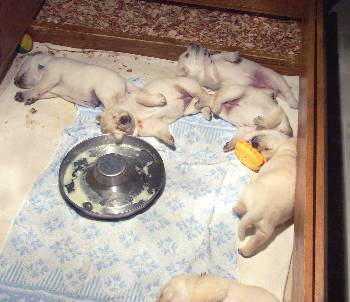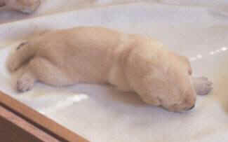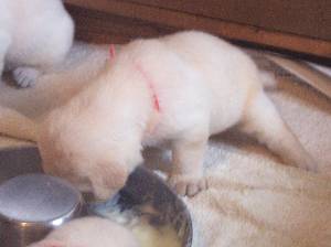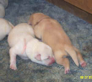 (left) Red Boy @ 3 weeks; (right) unidentified puppy @ 3 weeks