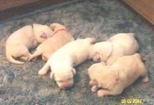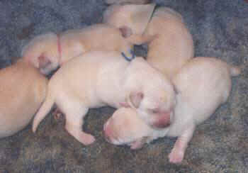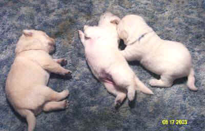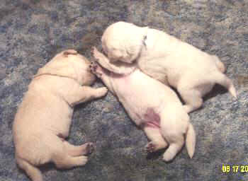 Green Boy, Red Boy, Pink Girl - 2 weeks Pups @ 2 weeks
