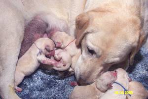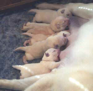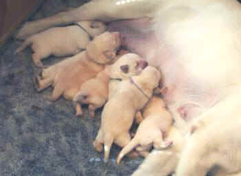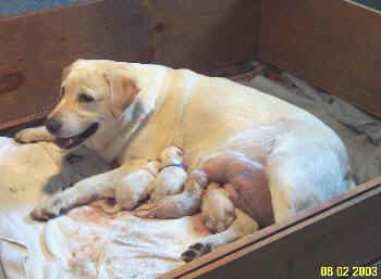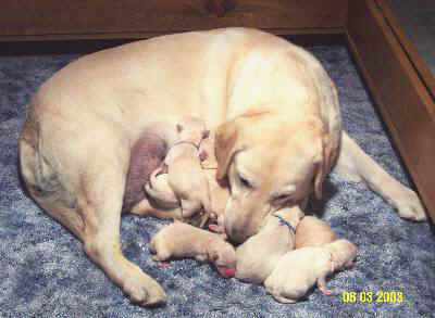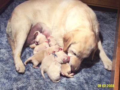 Summer & first 4 puppies ... Pink Girl, Blue Boy, Lavender Girl & Peach Girl