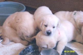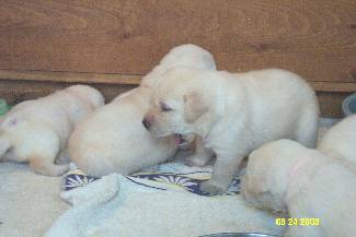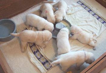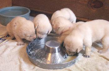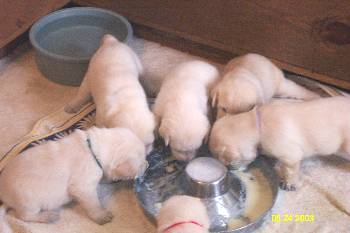 Puppies eating and after eating @ 3 weeks Maybe as much on them as in them!