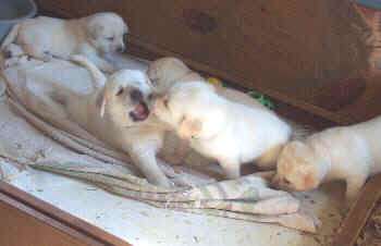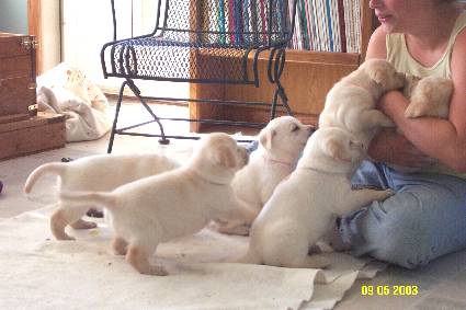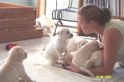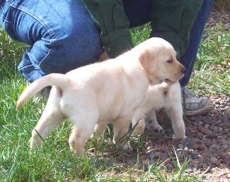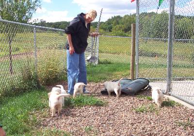 Playing in kennel yard with Debbie Thiermann @ 6 weeks