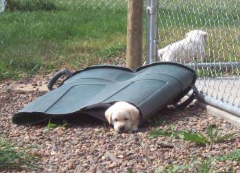 Puppy in play tunnel - 6 weeks Red Boy & Blue Boy - 6 weeks