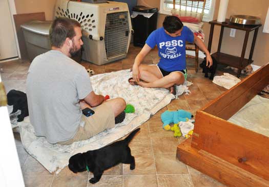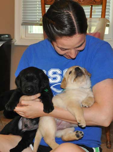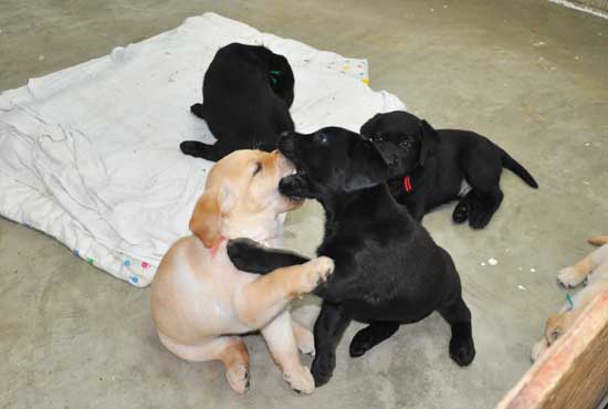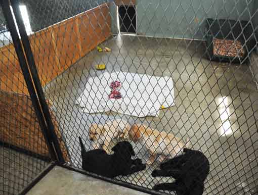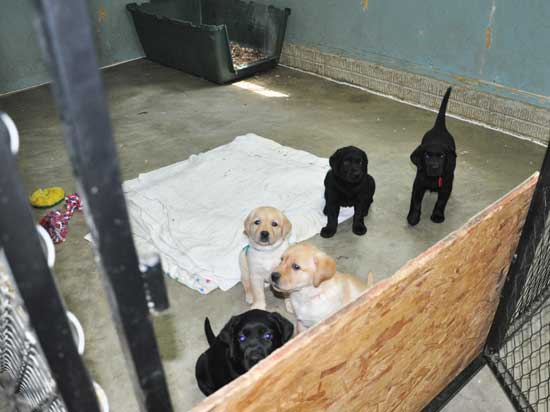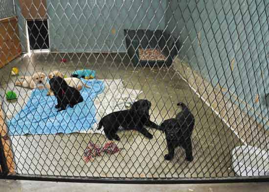 By 5.5 weeks, puppies have moved to their indoor/outdoor kennel run ...