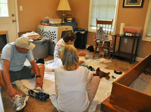 Turquoise Girl at 4.5 weeks (at right with Nancy)