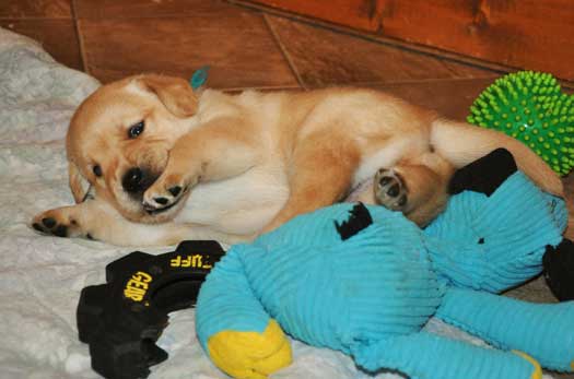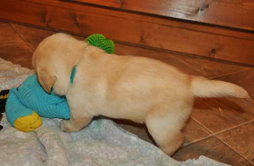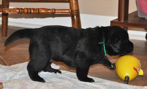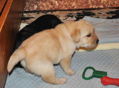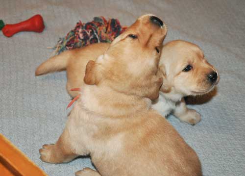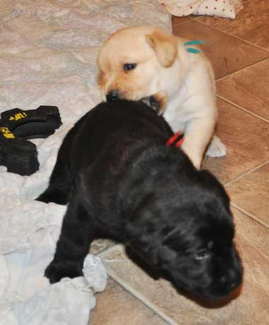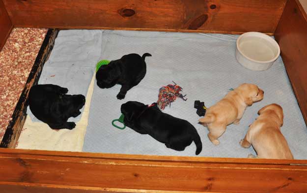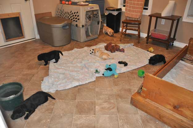Puppies playing in whelping room at 3.5 weeks