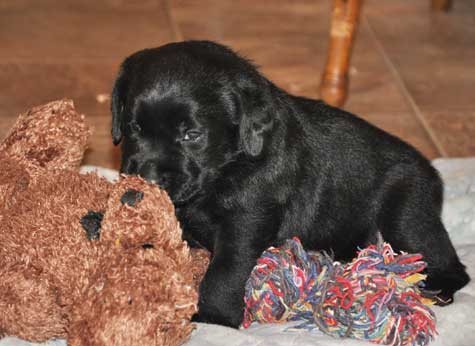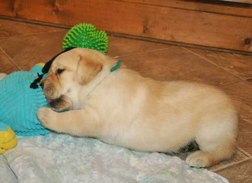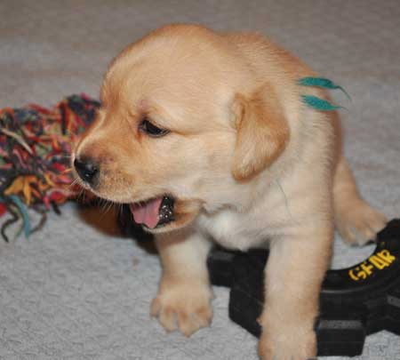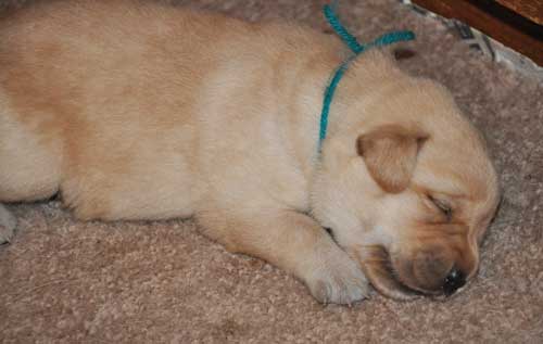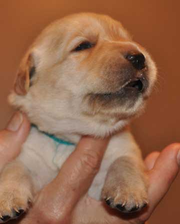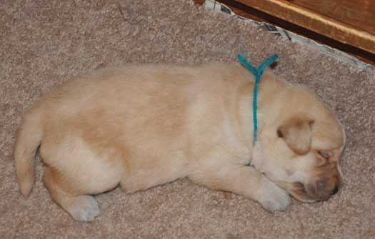 Turquoise Girl at 3 weeks ... no longer a little, skinny puppy!!!