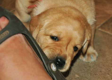 Peach Girl at 3.5 weeks ... with my sandal on the right!