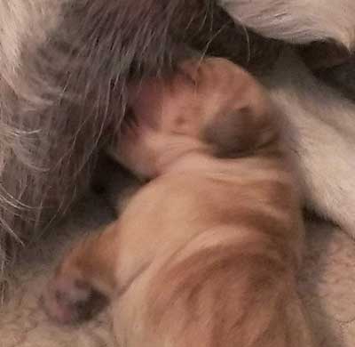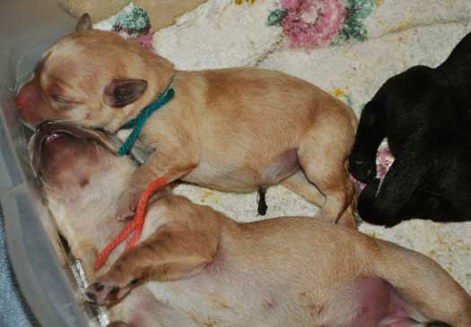 Puppies at 12 days (Turquoise, Red, Yellow, Green & Peach)