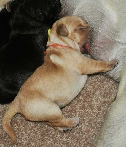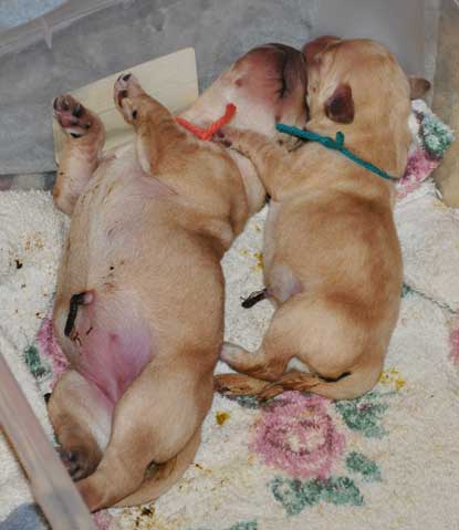 The two yellow girls shortly after birth ... notice the outstanding pigment on