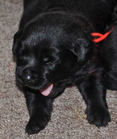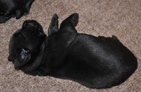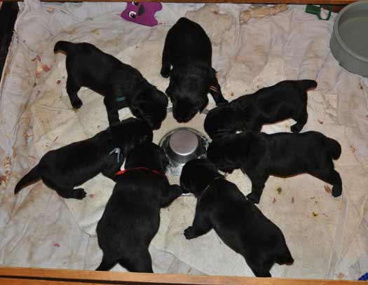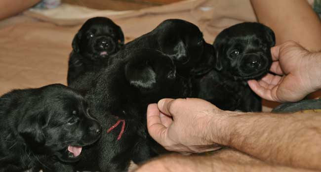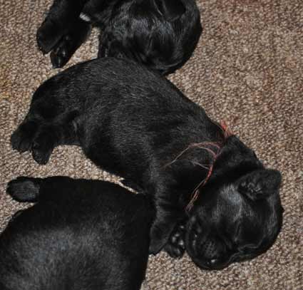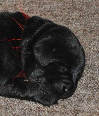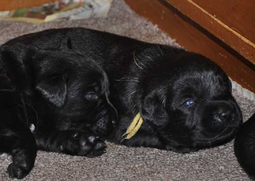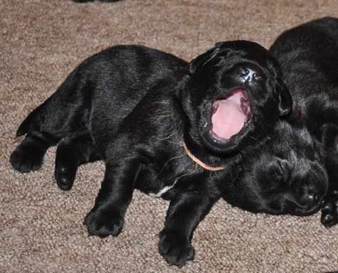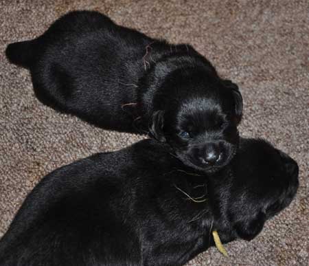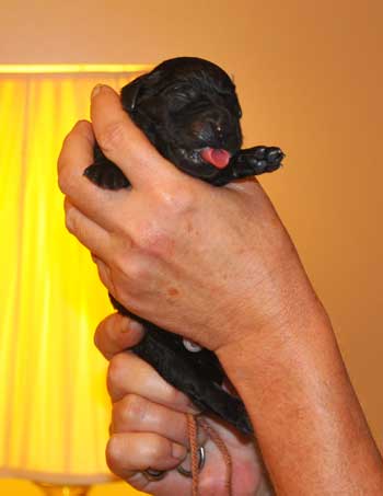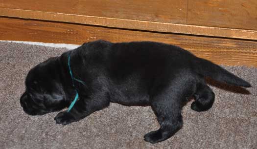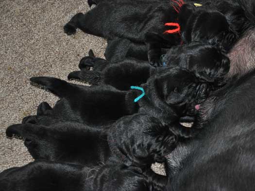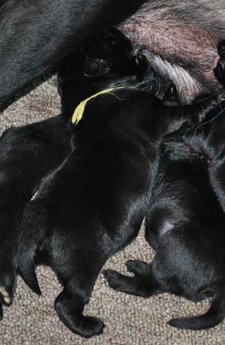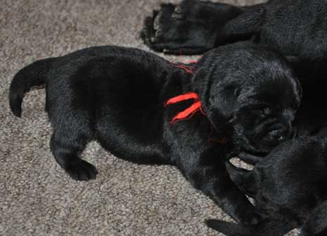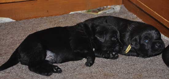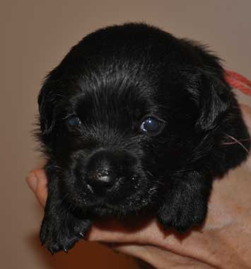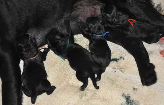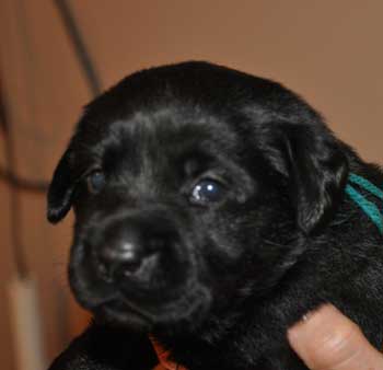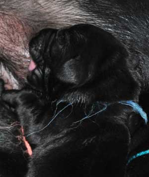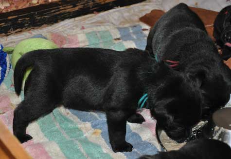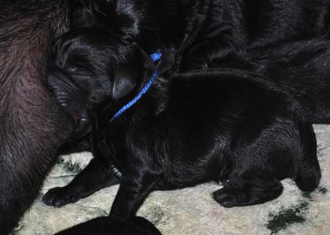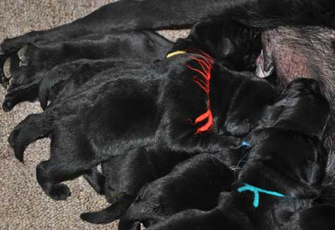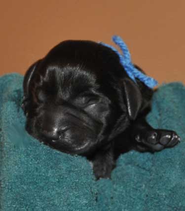 At birth: (left) Frist 4 puppies - (right) Turquoise Girl