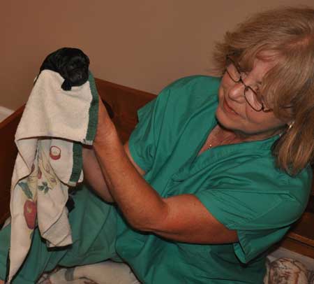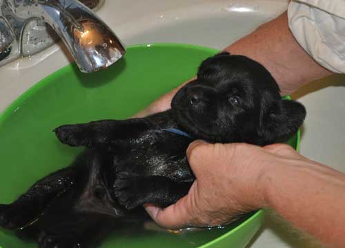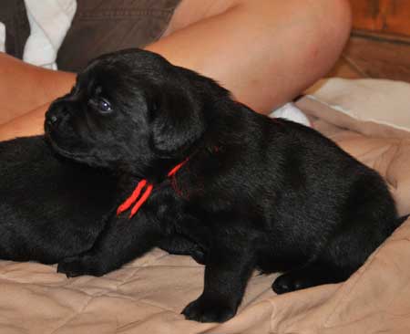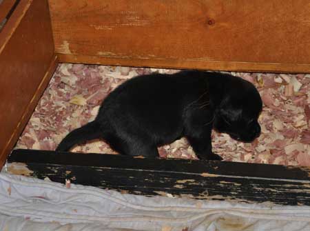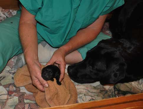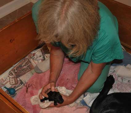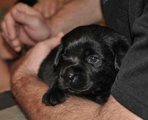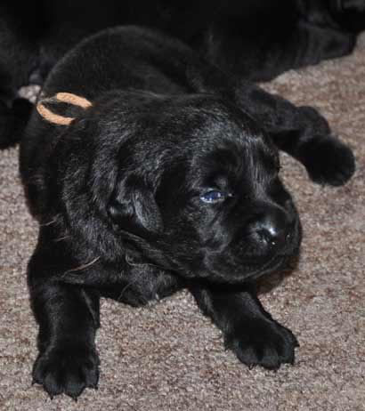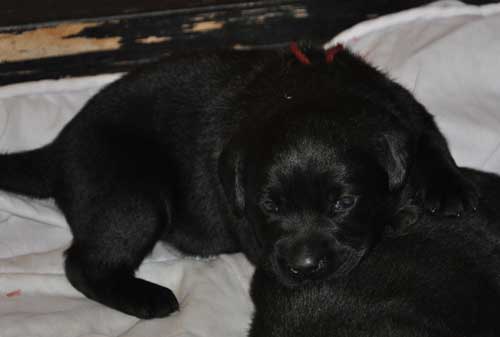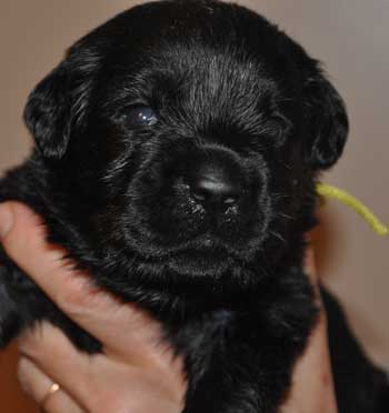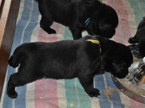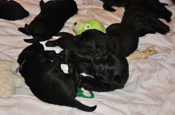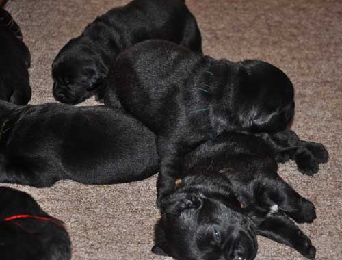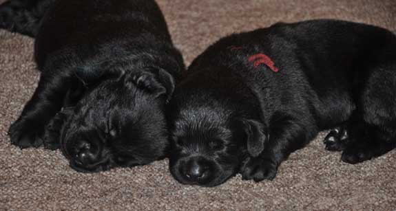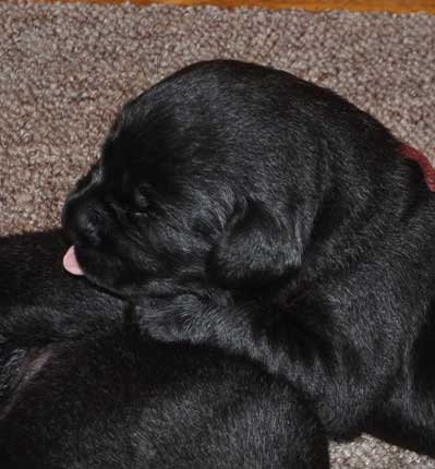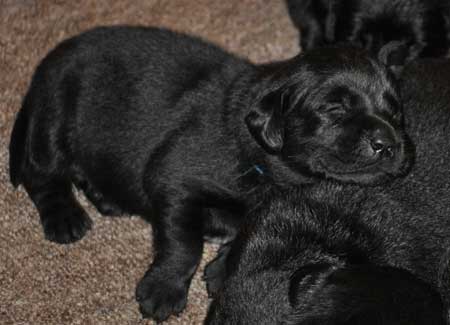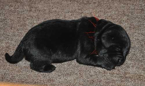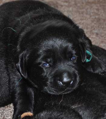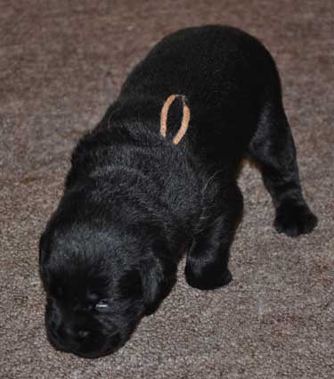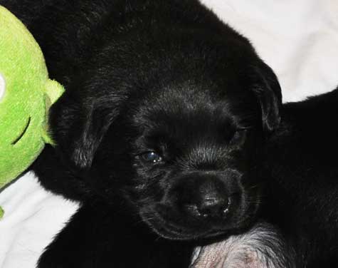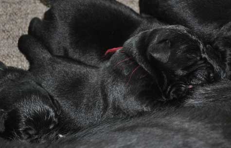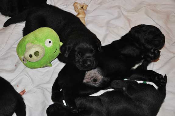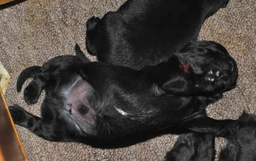 At birth: (left) Frist 4 puppies - (right) Turquoise Girl