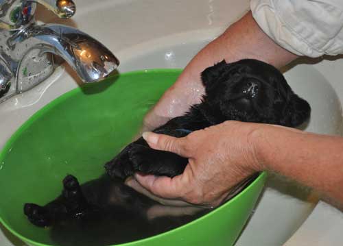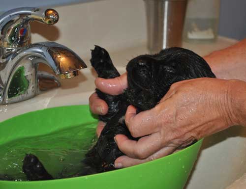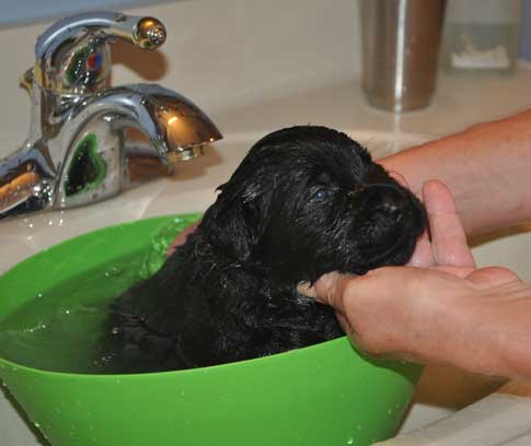 Brown Boy getting a bath at 3 weeks ... they ALL were so good, so relaxed!