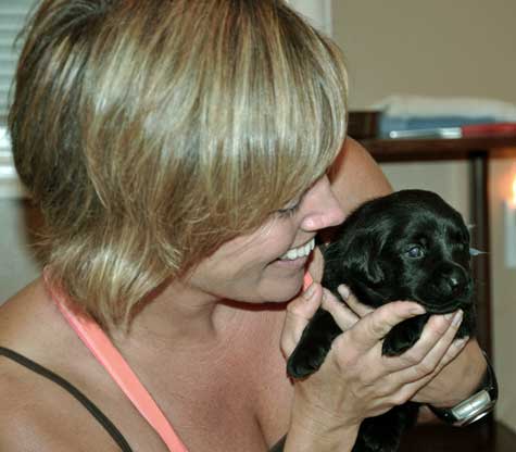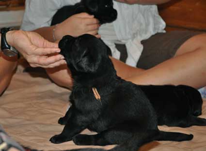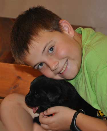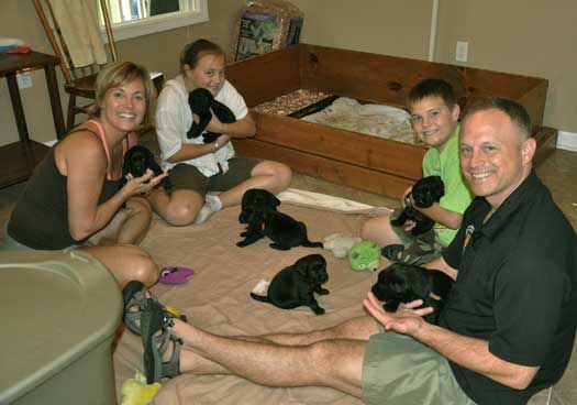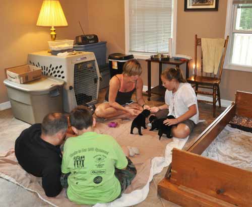 This is the Marx family enjoying the puppies at 3 weeks + 3 days of age