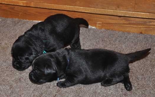 3 weeks: (left) Blue Boy - (right) Peach Girl