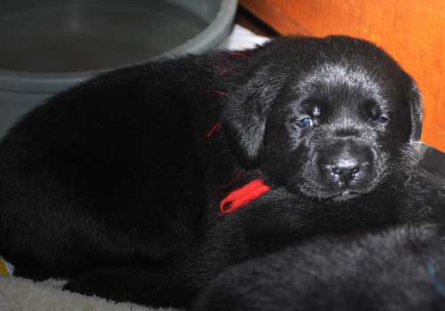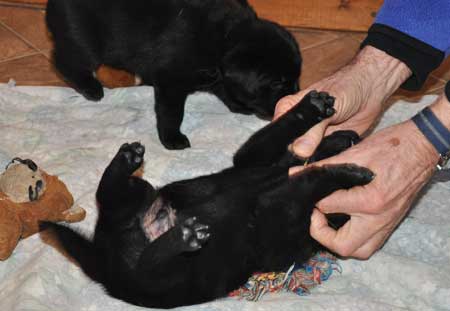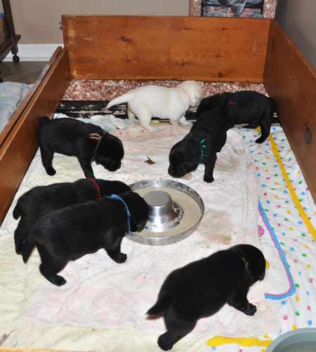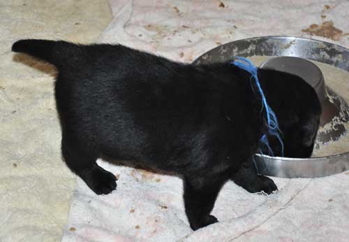 3.5 weeks (left) Puppies eating - (right) Blue Boy