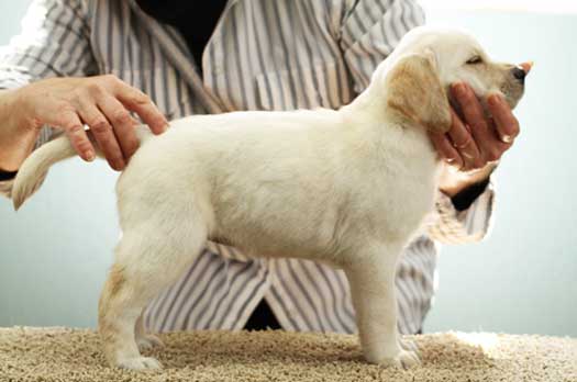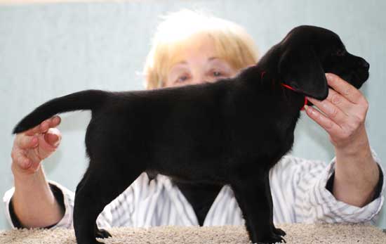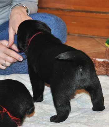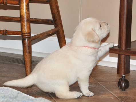 Burgundy Boy at 4 weeks ... thinks he's a show dog!