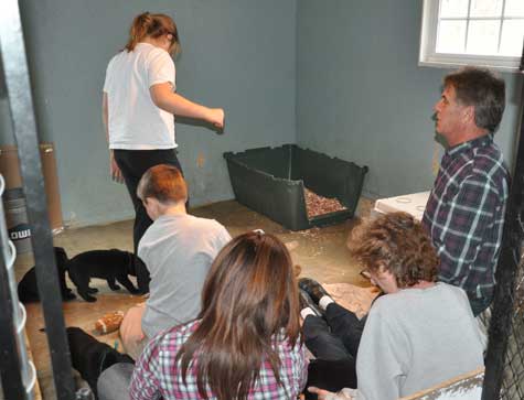 The puppies having fun with the Lett family at 2 days shy of 6 weeks