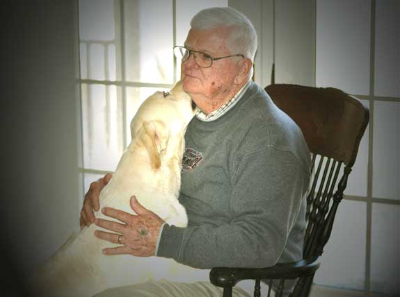 Biscuit and the daddy-to-be of her little black boy sharing a special moment.