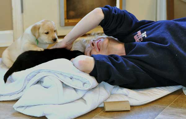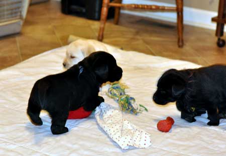 The Hamlets ... having a great time with the puppies at 4.5 weeks!