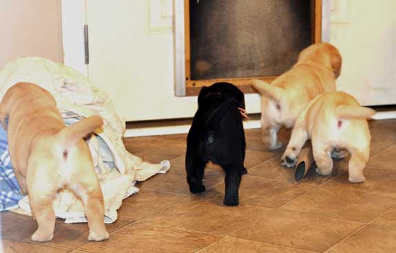 Puppies playing in whelping room at 4.5 weeks ... nice strong little butts!