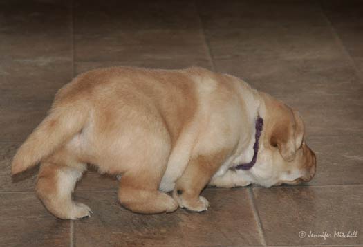 Purple Girl learning to walk on slippery floor at 3.5 weeks