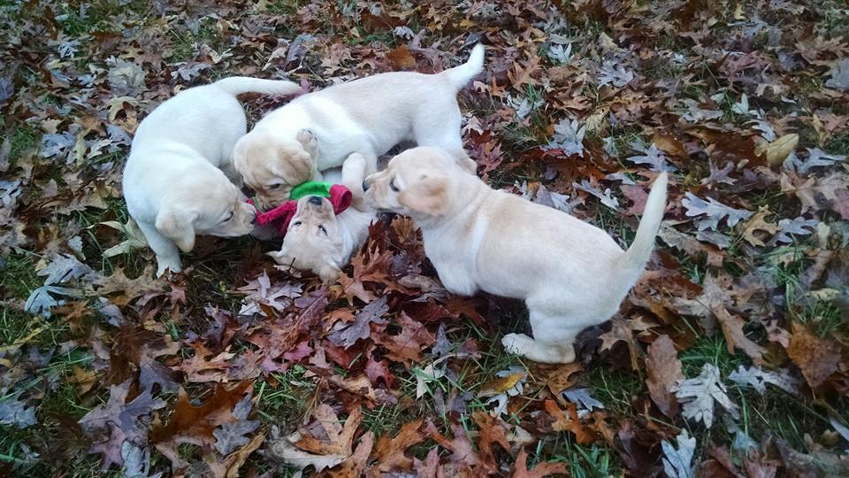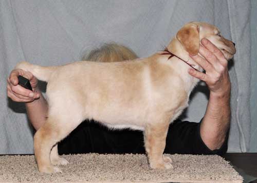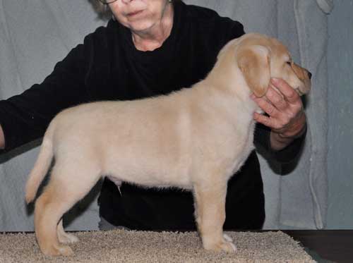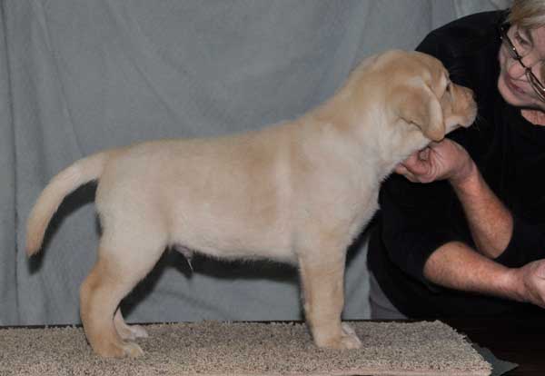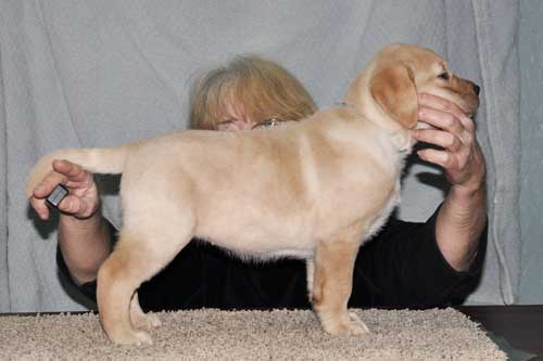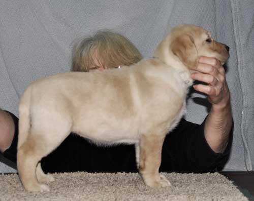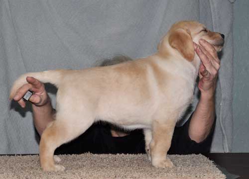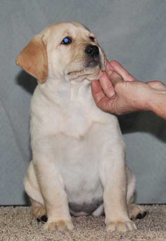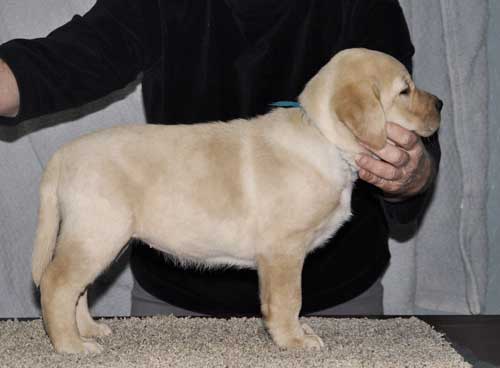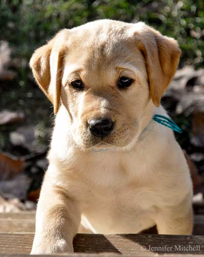 Playing in the yard at 7 weeks Blue Boy going to his home at 8 weeks "Oakley" Carmona (aka Burgundy Girl) at 8 weeks in California Peach Girl playing in the yard at 8.5 weeks (she lays stretched out just like her granddaddy Jack!) Turquoise Girl attempting the front porch steps at 8.5 weeks Turquoise Girl at 8.5 weeks ... my little keeper!