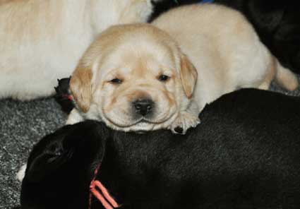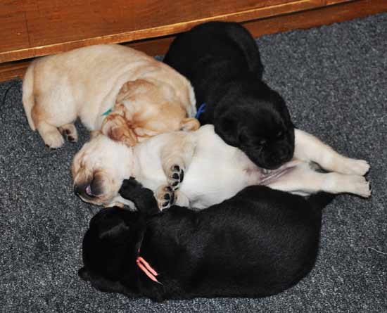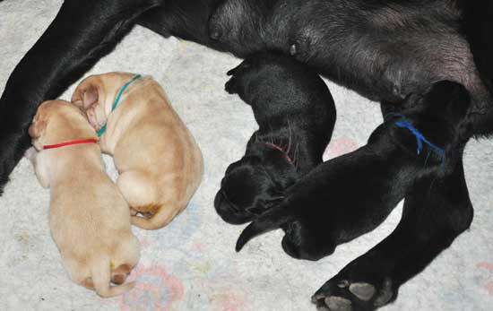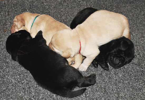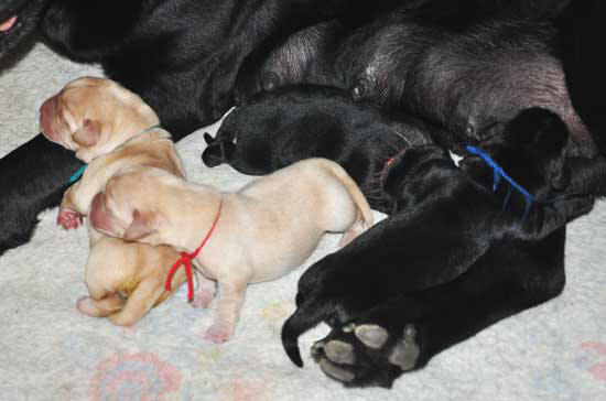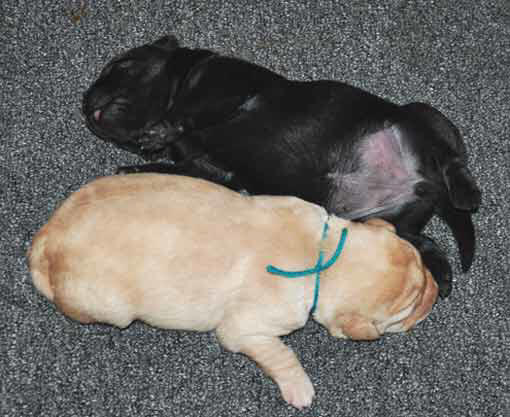 Puppies at 8 days ... girls on the left, boys on the right, SO