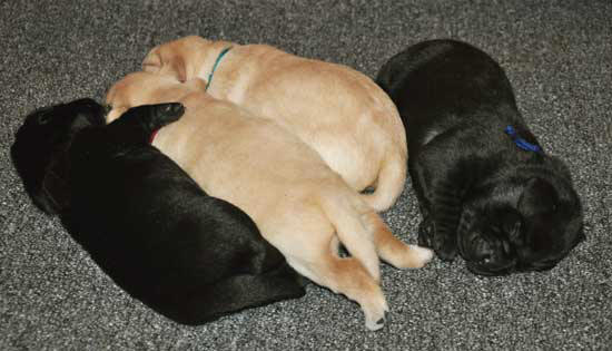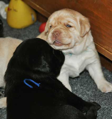 3 weeks: (left) Red Boy - (right) Blue Boy & Turquoise Girl