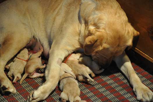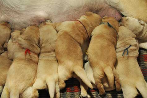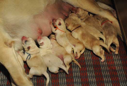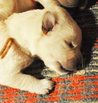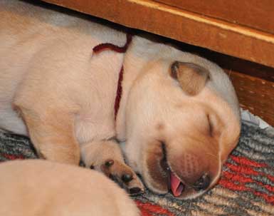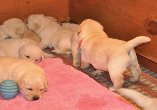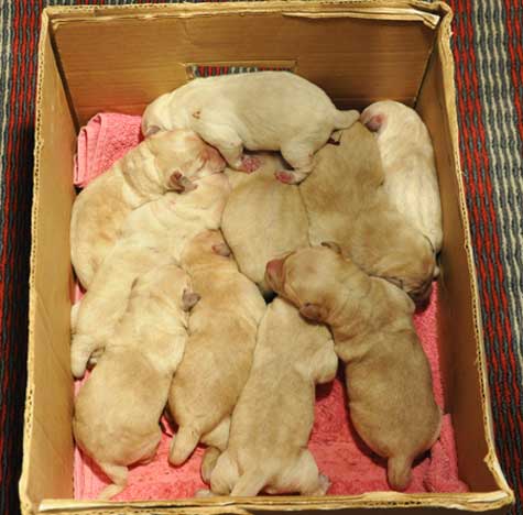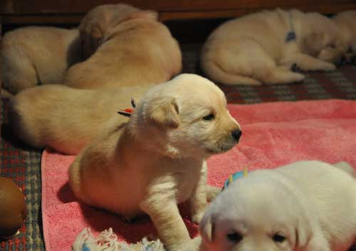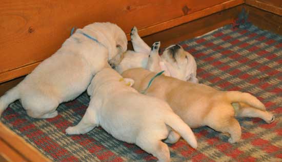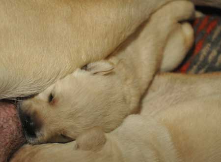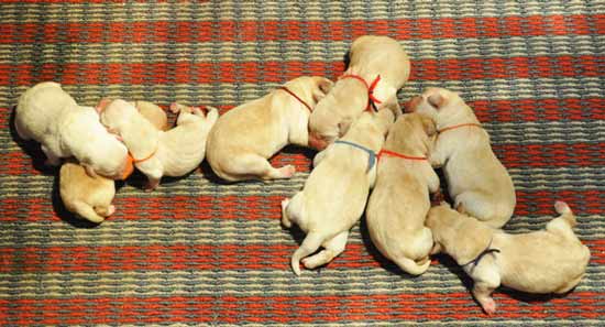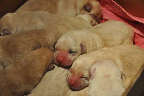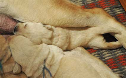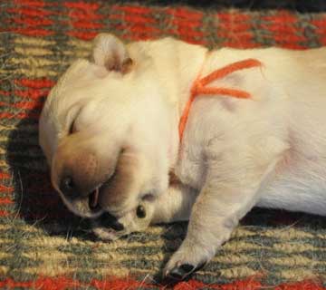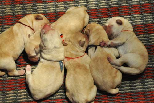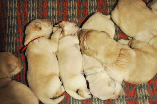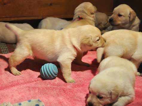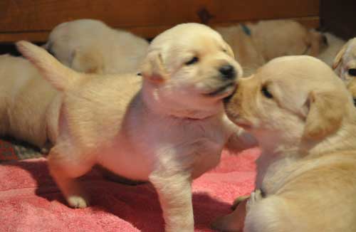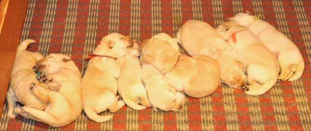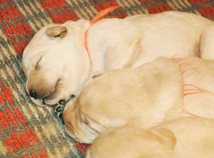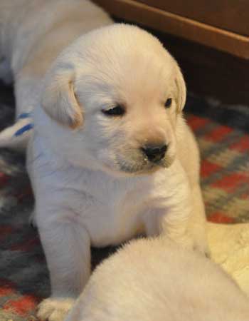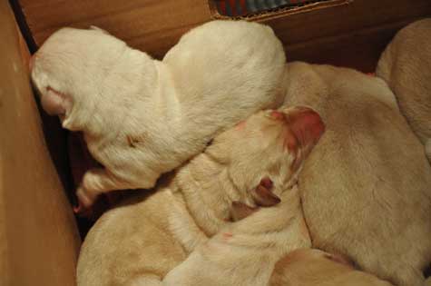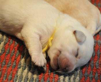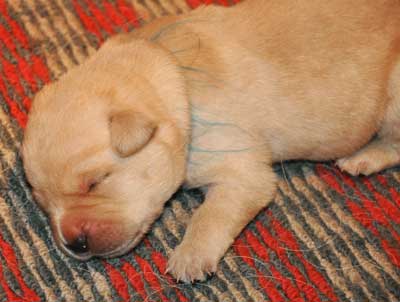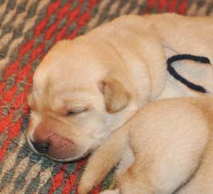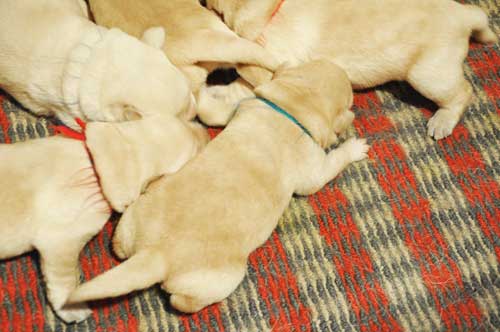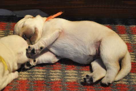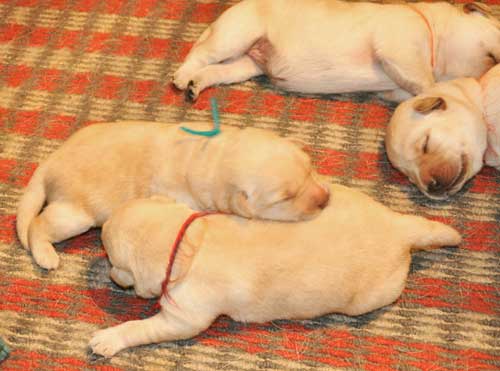 3.5 weeks: (left) Navy Boy - (right) Red/Navy Boy contemplating his navel!