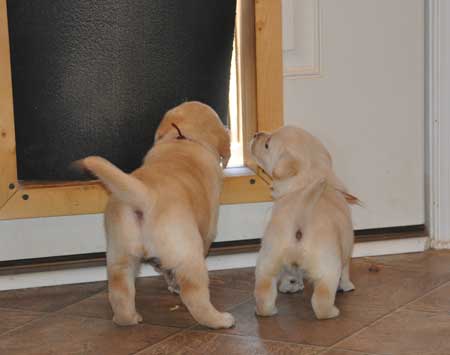 Puppies learned to use the doggy door in a matter of minutes and really enjoyed