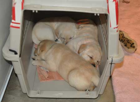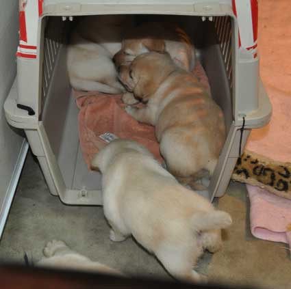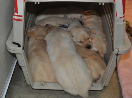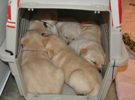 OK, 6 of us in here is a bit much! Mom, we need another crate!!!