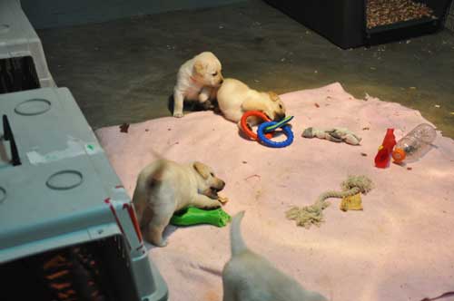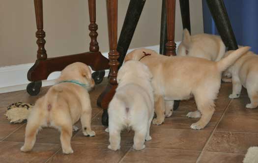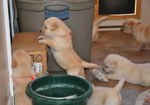 Playing in the whelping room at 5 weeks