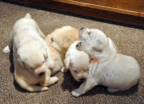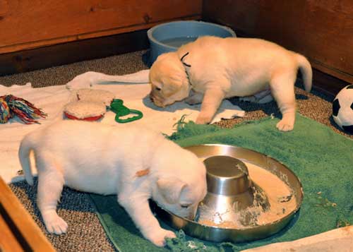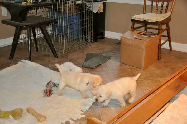 (BTW, no one was the least bit shy about the new space out of the whelping box,