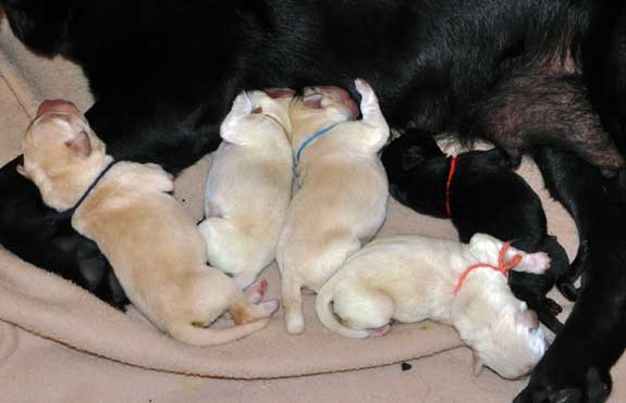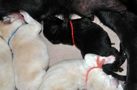 12 hour old (left to right): Navy Boy, Brown Boy, Blue Boy, Red Boy, Peach