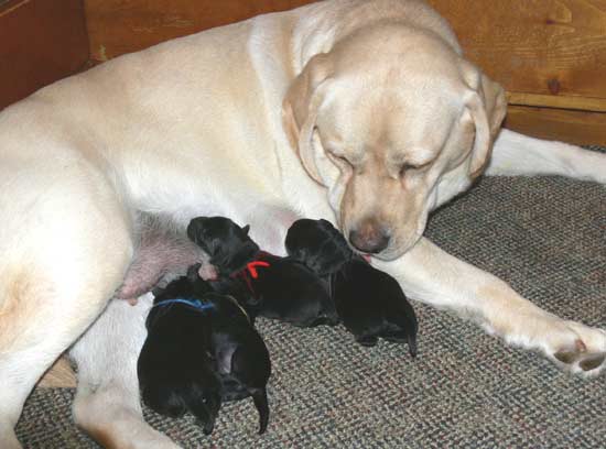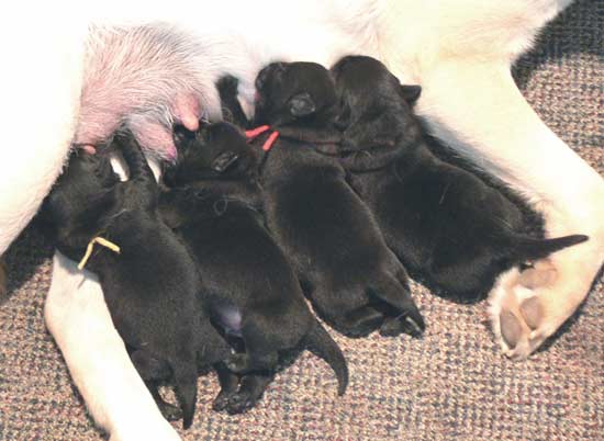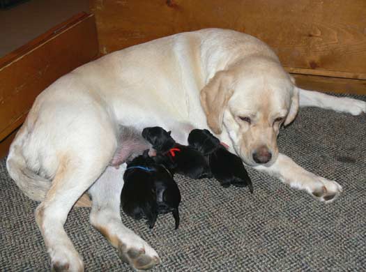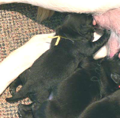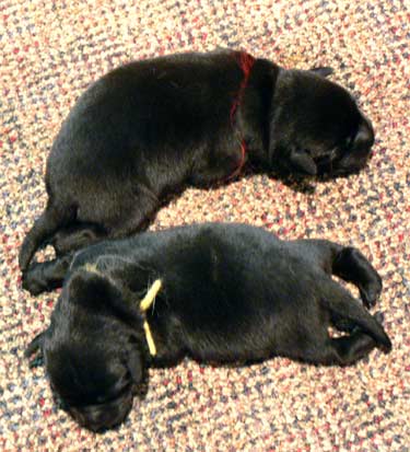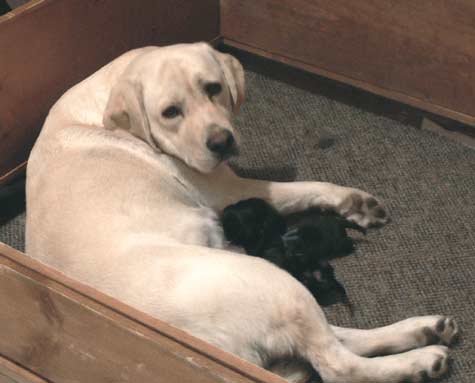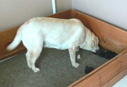Clarice (right) in whelping box the day before whelping